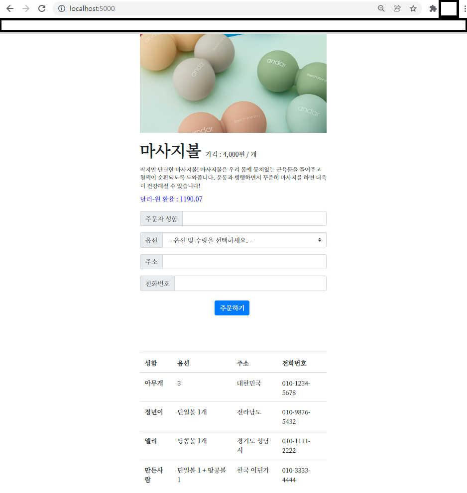 오늘의 숙제. Flask 프레임워크를 이용하여 로컬 개발환경에서